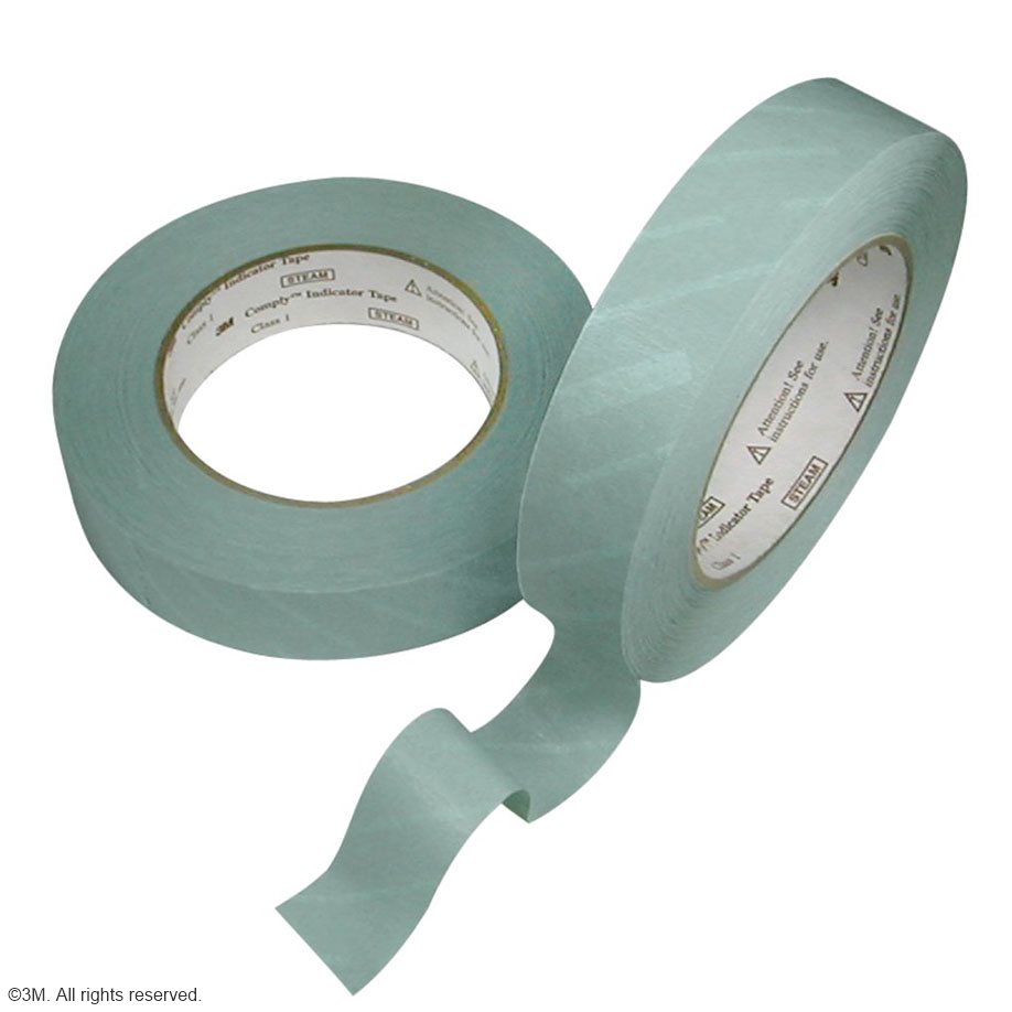Comply Indikatorbänder für die Dampfsterilisation. Alle Bänder sind zur Identifikation beschriftbar oder lassen sich mit Etiketten bekleben. Das Kreppmaterial der Bänder dehnt sich währed der Sterilisation soweit aus, dass ein Aufplatzen der Verpackungen verhindert wird. Die entsprechenden Anforderungen an Heißluftsterilisation werden erfüllt. Klasse 1 Indikator.