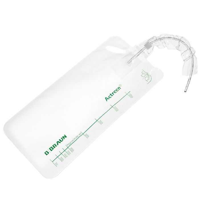 - Beutel: 1.000 ml Volumen, fest mit dem Katheter verbunden, transparent für optimale Sichtkontrolle des Urins, inkl. Urinrückflusssperre