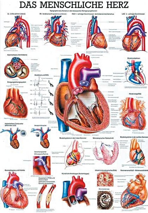 Die Zusammenarbeit von anerkannten Anatomen und den besten wissenschaftlichen Zeichnern haben Anatomietafeln hervorgebracht, die ihresgleichen suchen. Ein klares Konzept gewährleistet Genauigkeit und Anschaulichkeit gleichermaßen. Durch engen Kontakt zur medizinischen Forschung bleibt eine permanente Aktualisierung der vorhandenen Tafeln und eine stetige Neuentwicklung sichergestellt. Die Tafeln fassen alle relevanten Informationen in konzentrierter Form zusammen. Dabei decken sie nicht nur das jeweils betrachtete anatomische Thema grafisch ab, sondern stellen auch die spezifischen Krankheiten bzw. Unfallschäden dar. Und ganz nebenbei bieten sie auch noch einen interessanten Blickfang für jeden Arbeitsraum und jedes Behandlungszimmer. dar. Damit die grafische Qualität im Druck erhalten bleibt, werden Rüdiger-Tafeln in einem aufwendigen 4 bzw. 5 Farbdruck auf besonders starkem und reißfestem 200 gr. Papier gedruckt. Zur Aufhängung sind die Lehrtafeln oben und unten mit einer Metallschiene versehen.