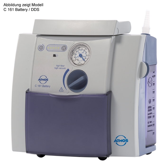 Akkubetriebener mobiler Sekretsauger, Saugleistung: 22 ± 2 Ltr./Min, stufenlose Vakuumregulierung und Präzisionsanzeige, Kondensatfalle, 5-stufen LED-Akkukapazitätsanzeige, Li-Ionen-Akku (Laufzeit: 40 Min.), Ladedauer: ca. 1,5 Std., graduierter Sekretbehälter 1 Ltr., Sekretbehälterdeckel mit 3-facher Übersaugsicherheit durch moderne Filtertechnologie, integrierten Übersaugschutz und DDS (Direct-Docking-System), 1 DDS-Bakterienfilter, Kondensatfalle, Silikon-Saugschlauch Ø 6 mm, L = 1,30 m, alle Schläuche und Sekretbehälterteile autoklavierbar bis 134°C, Abmessungen (H x B x T): 250 x 255 x 180 mm. Einsatz auf Station und im Pflege-/Rehabereich.