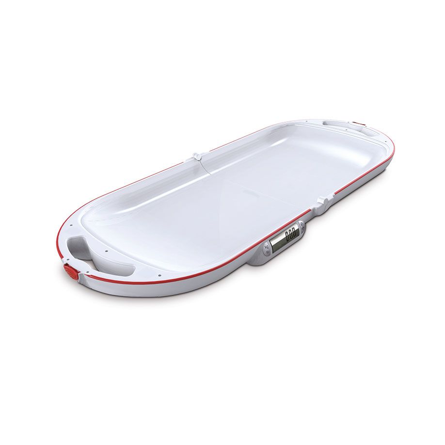 Die Babywaage mit praktischer Klappfunktion für Eltern, Hebammen und Apotheken lässt sich auf die Hälfte ihrer Länge reduzieren und besticht durch ihr geringes Gewicht. Darüber hinaus tragen auch der integrierte Tragegriff sowie ein gelungenes Design in Form eines Beautycase entscheidend dazu bei, dass sie besonders handlich und einfach zu transportieren ist. Selbst bei sehr unruhiger Lage des Kindes garantiert die Achtpunkt-Verwiegung stets eine exakte Gewichtsermittlung, die durch ein ausgesprochen gut lesbares, großes Ziffernbild (15 mm hohe LCD Ziffern) abgerundet wird. Die Babywaage verfügt über eine umweltfreundliche Abschaltautomatik, die zu einer langen Batterielebensdauer führt. Ausführung: Tarierfunktion. ruhige Gewichtsanzeige durch Filterung und Hold-Funktion, zusammengeklappte Waage wird mit Magneten zusammengehalten, einfaches und schnelles Öffnen: Haltegriffe auseinander ziehen und Boden entnehmen, Kunststoffgehäuse
