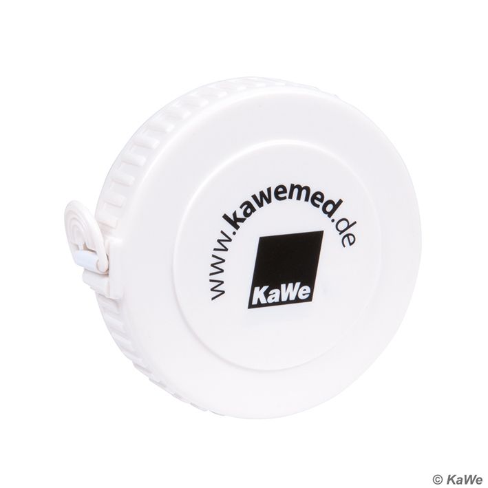 Angabe in cm und inch (beidseitig bedruckt), Gehäuse und Maßband aus Kunststoff, Ø ca. 5 cm