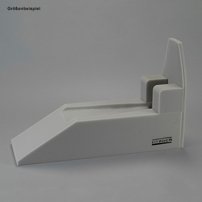 Diese Schaumstoffschiene dient zur Hochlagerung des Beines bei Knochenbrüchen, Verrenkungen, Quetschungen, Erste-Hilfe-Versorgung und kurzfristigen Behandlungen sowie Venenentzündungen und Thrombosen. Das aus Kunststoff bestehende, gepolsterte Fußbett mindert die Gefahr der Spitzfußbildung. Zusätzliche Standfestigkeit kann durch einen strahlendurchlässigen, kunststoffbeschichteten Rahmen erreicht werden. Der Schaumstoff ist weich, wodurch keine Durchblutungsstörungen entstehen, und ist leicht desinfizierbar.