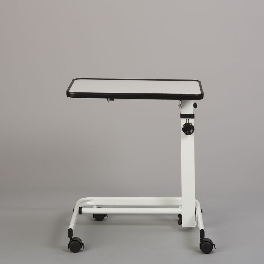 Beim Schreiben, Lesen, Essen und vielem mehr wird dieser praktische Helfer gefallen. Die Tischplatte kann in vorgegebenen Lochungen festgestellt werden, für höhere Stabiliät und Sicherheit. Die Tischplatte selbst ist klappbar, mit erhöhter Umrandung und kann dadurch Gegenständen sicheren Halt geben. Der Tisch hat eine neigbare Säule um 80° und kann den räumlichen Verhältnissen angepasst werden. Das Fußgestell lässt sich unter das Bett schieben, sodass die ganze Tischplatte vor dem Patienten ist. Vier Leichtlauf-Rollen, alle feststellbar mit Bremse. Bei Nichtgebrauch platzsparend zusammenklappbar.