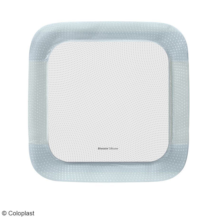 Biatain® Silicone ist ein Polyurethanschaumverband mit einer sanften, vollflächigen Silikonhaftung. Durch einen vollen Kontakt des Schaumkissens mit der Wunde zeichnet sich der Verband durch eine ungehinderte, sehr gute Absorption aus. Die exzellente Retention ermöglicht den Einsatz des Verbandes unter Druck (Kompression). Durch das Silikon Distanzgitter lässt sich der Verband atraumatisch und schmerzarm Entfernen und Repositionieren. Eine einfache, aseptische Applikation wird dank der Non-Touch-Technologie ermöglicht, einer 3-teiligen Applikationsfolie. Durch den extrem flexiblen Aufbau, ist der Verband sehr anschmiegsam und passt sich gut der Körperkontur an.