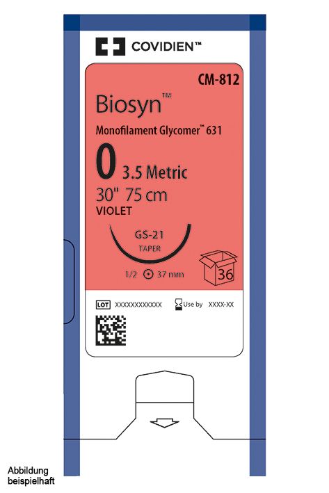Das resorbierbare Synthetik-Nahtmaterial Biosyn wird aus Gylcomer 631, einem synthetischen Polyester bestehend aus Glykolid (60%), Dioxanon (14%) und Trimethylencarbonat (26%) gefertigt. Zur allgemeinen Adaption und/oder Ligatur von Weichteilgewebe (u.a. bei ophthalmologischen Eingriffsverfahren), jedoch nicht bei kardiovaskulären oder neurologischen Eingriffsverfahren.