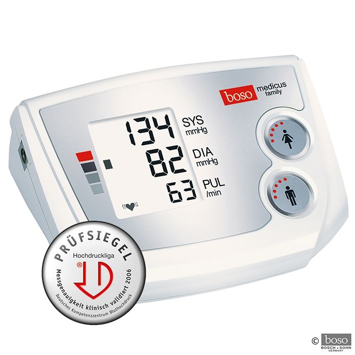 Digitalgerät - vollautomatische Messung am Oberarm. Mit zwei getrennten Speichern (je 30 Messungen) ist es ein ideales Partnergerät, zusätzlich steht auch ein Gastmodus zur Verfügung. Darüber hinaus ermöglicht die Auswertung des Blutdrucks eine genaue Beurteilung der Messwerte. Mittelwertfunktion für die Beurteilung des Blutdrucks nach WHO. Anzeige von Herzrhythmusstörungen zum Erkennen von z.B. Vorhofflimmern. Zwei Speicher für jeweils 30 Messwerte für 14-Tage-Profil. Intelligente Aufpumpautomatik für Messung ohne Nachpumpen. Mit Universal-Zugbügel-Klettenmanschette (22 - 42 cm). Anschlussmöglichkeit für Standard- und XL-Manschette, inkl. Batterien und Etui.