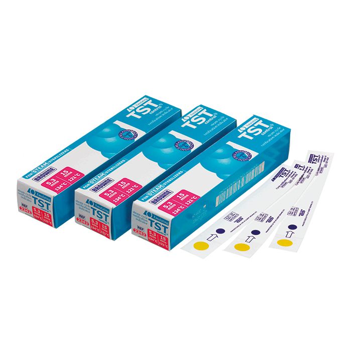 Wird ein TST Control-Emulationsindikator in ein Sieb, Paket oder einen Beutel gegeben, dient er als Nachweis, ob Dampf von hoher Güte bis zu seiner Position eingedrungen ist. Die Farbänderung von gelb in dunkelblau/violett liefert den Benutzern die optische Bestätigung, dass die spezifschen Zyklusparameter, die nachweislich zur Sterilisation führen, gegeben waren. Der TST Control-Emulationsindikator ermöglicht es Benutzern, einzelne Siebe, Pakete oder Beutel auszusortieren, die nicht ausreichend sterilisiert wurden.