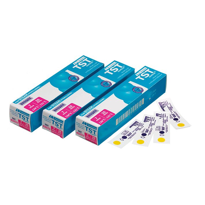 Wird ein TST Control-Emulationsindikator in ein Sieb, Paket oder einen Beutel gegeben, dient er als Nachweis, ob Dampf von hoher Güte bis zu seiner Position eingedrungen ist. Die Farbänderung von gelb in dunkelblau/violett liefert den Benutzern die optische Bestätigung, dass die spezifschen Zyklusparameter, die nachweislich zur Sterilisation führen, gegeben waren. Der TST Control-Emulationsindikator ermöglicht es Benutzern, einzelne Siebe, Pakete oder Beutel auszusortieren, die nicht ausreichend sterilisiert wurden.