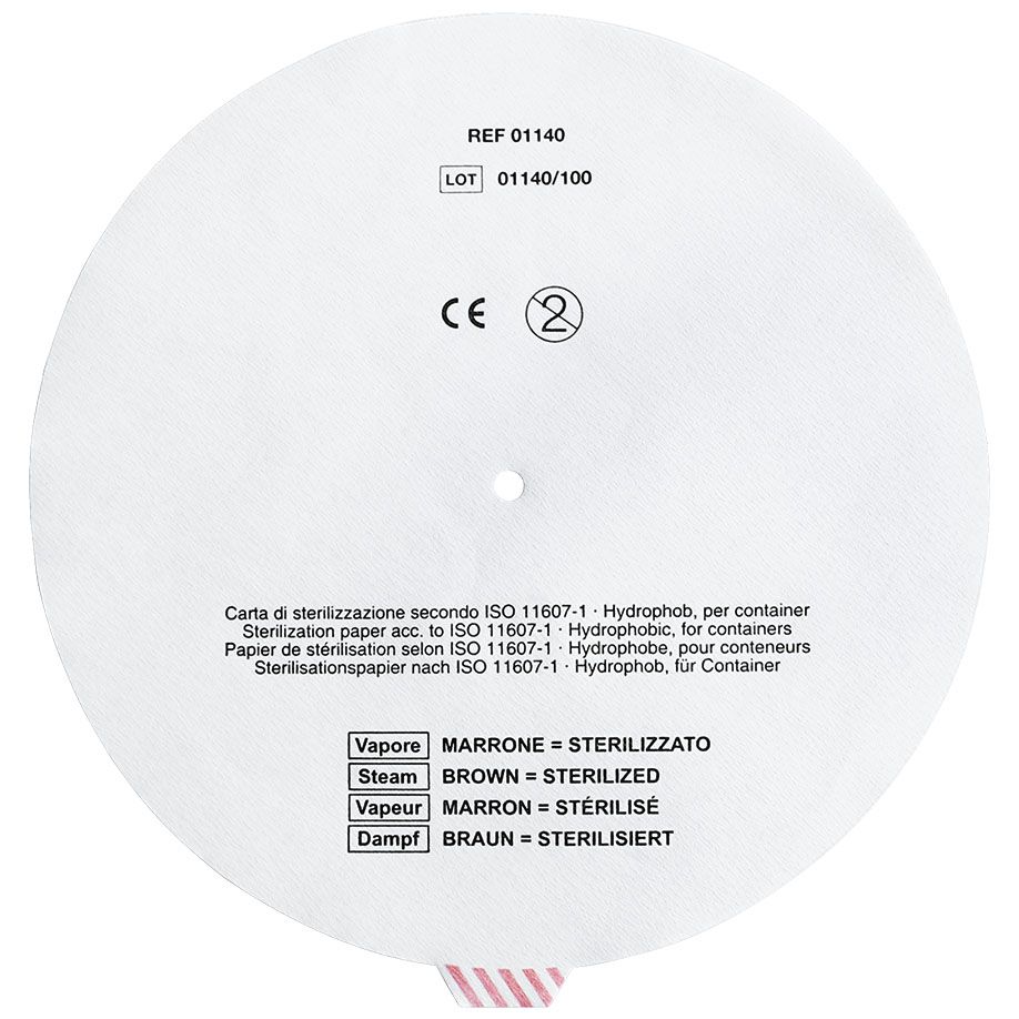 aus Papier zum Einmalgebrauch nach ISO 11607-1, Lochstanzung zentral Ø 6 mm, weiß, Filter-Aufdruck: mit Anwendungsinformation, für Aesculap-Container