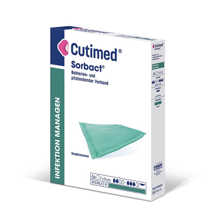 Cutimed® Sorbact® bindet Keime nach dem Prinzip der hydrophoben Wechselwirkung und kommt ohne die Verwendung chemischer antimikrobieller Substanzen aus. Die spezielle Sorbact®-Beschichtung verleiht dem Produkt starke hydrophobe (wasserabweisende) Eigenschaften. Viele pathogene Bakterien und Pilze sind von Natur aus hydrophob und binden sich deshalb irreversibel an die Wundauflage. So wird mit jedem Verbandwechsel die Keimzahl in der Wunde reduziert und optimale Bedingungen für den natürlichen Wundheilungsprozess geschaffen.
