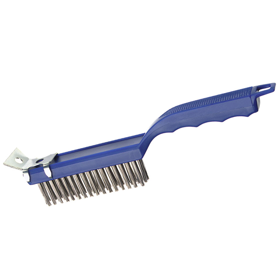 Griff aus blauem Polypropylen, Borsten aus Edelstahl, Klinge zum Kratzen in Engstellen, ideal für Grillroste und Bratplatten, Klingenbreite 4 cm, Borstenlänge 2,5 cm