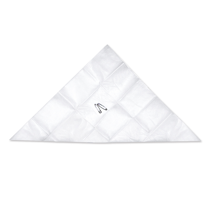 Praktisches Hilfsmittel bei der Versorgung von Verletzungen, insbesondere dient es als Tragetuch bei Armverletzungen. Das fest zusammengedrehte Tuch kann zum Abbinden einer verletzten Arterie verwendet werden, auch als Notverband und bei Kopfverletzungen einzusetzen. Non-Woven Material (aus 100 % Polypropylen), mit 2 Sicherheitsnadeln, weiß