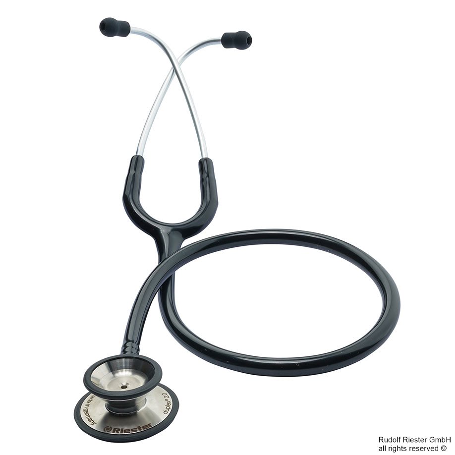 Innovatives Akustiksystem mit außergewöhnlich guten Auskultationsmöglichkeiten in allen Frequenzbereichen. Präzisions-Doppelbruststück aus rostfreiem Edelstahl mit Riester Spezialmembran Ø 44 mm und Trichter Ø 32 mm, für präzise Akustik, mit flachen und weichen Kälteschutzringen zur optimalen Adaption auf der Haut. Anatomisch geformte Ohrbügel aus eloxiertem Aluminium mit verstärkter, innen liegender Mehrfachfeder für einstellbaren Anpressdruck. Extraweiche, auswechselbare und drehbare Ohroliven zur perfekten Abdichtung am Gehörgang und hohem Tragekomfort. Extra starker Y-Schlauch aus PVC mit separaten Schallleitwegen zur Abschirmung unerwünschter Nebengeräusche. Gesamtlänge: 74 cm, latexfrei. Das duplex®2.0 wird mit einem Paar weichen Ersatzohroliven, einer Ersatzmembran und Namensschild geliefert.