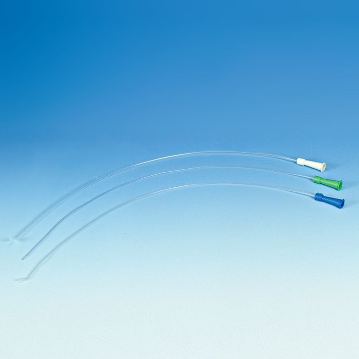 52 cm lang, zentrale Öffnung, 2 seitliche Augen, silikonisiert, einzeln steril verpackt, Material: PVC, Shore 70