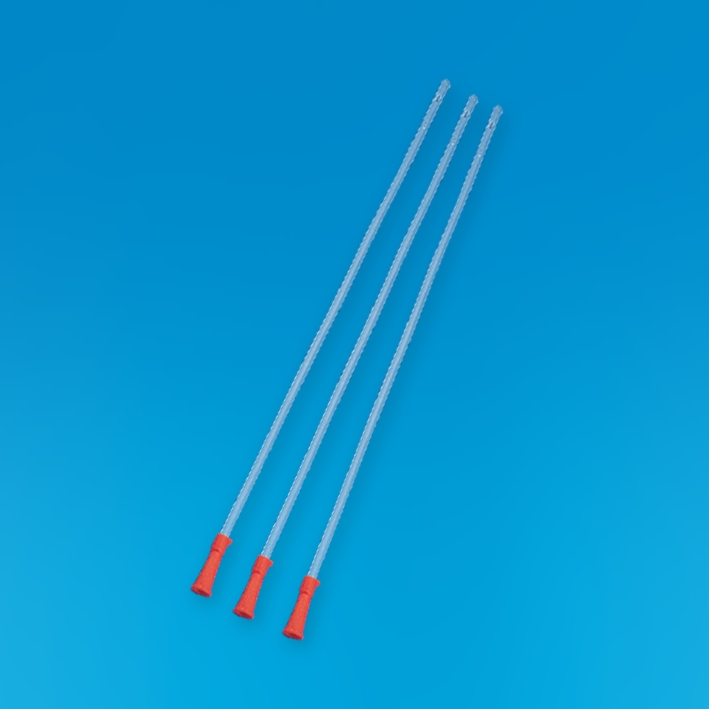 40 cm lang, geschlossene Spitze, 2 seitliche Augen, mit verrundeten Stanzkanten - insbesondere Patienten mit häufigem Wechsel (z. B. im Homecare-Bereich) werden dieses zu schätzen wissen - mit Trichteransatz, einzeln steril verpackt