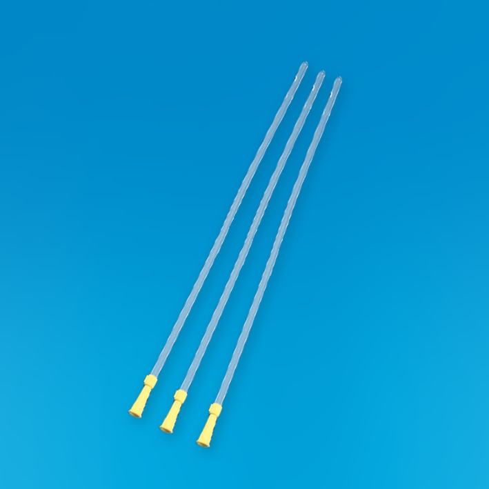 40 cm lang, geschlossene Spitze, 2 seitliche Augen, mit verrundeten Stanzkanten - insbesondere Patienten mit häufigem Wechsel (z. B. im Homecare-Bereich) werden dieses zu schätzen wissen - mit Trichteransatz, einzeln steril verpackt