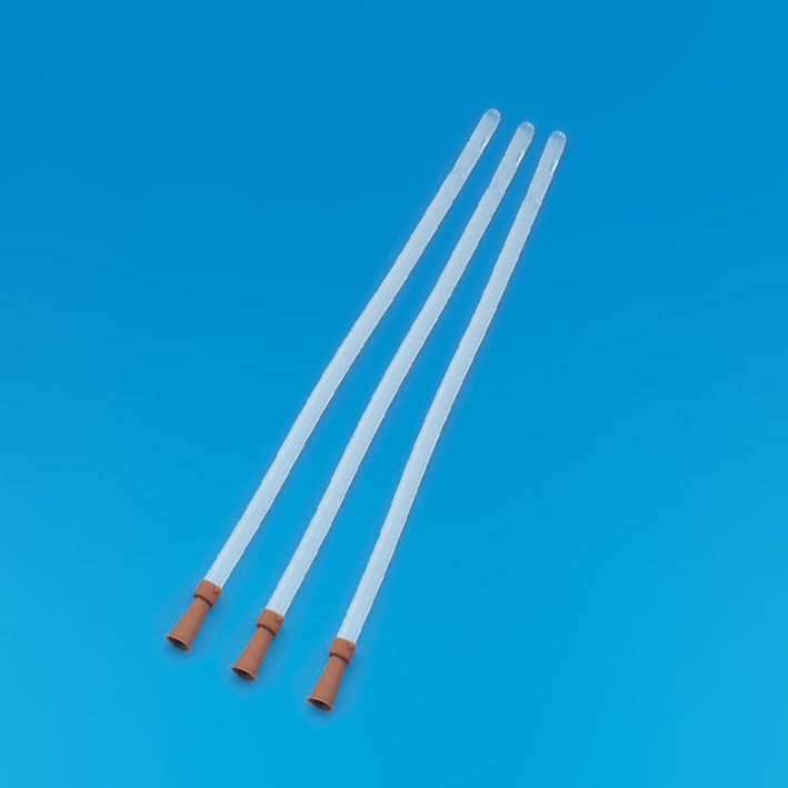 40 cm lang, geschlossene Spitze, 2 seitliche Augen, mit verrundeten Stanzkanten - insbesondere Patienten mit häufigem Wechsel (z. B. im Homecare-Bereich) werden dieses zu schätzen wissen - mit Trichteransatz, einzeln steril verpackt