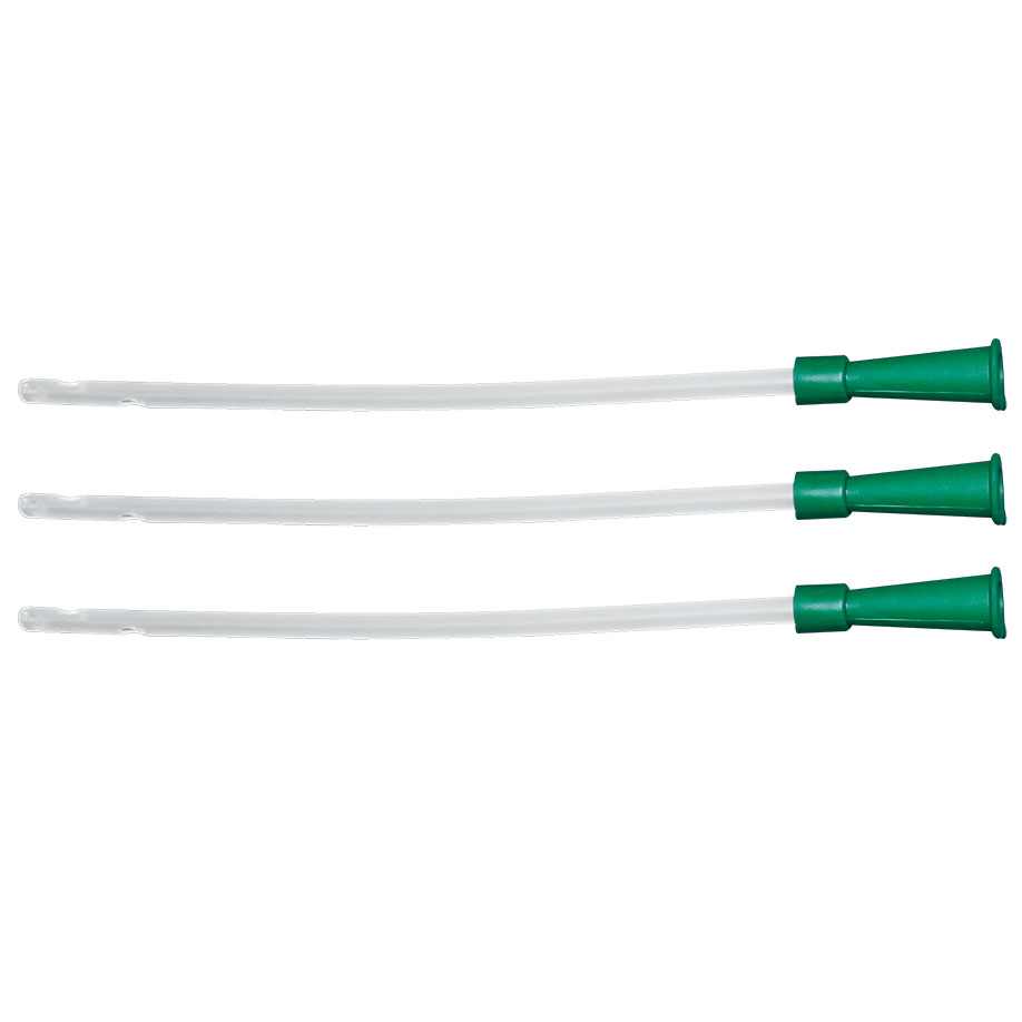18 cm lang, geschlossene Spitze, 2 seitliche Augen, mit verrundeten Stanzkanten - insbesondere Patienten mit häufigem Wechsel (z. B im Homecare-Bereich) werden dieses zu schätzen wissen - mit Trichteransatz, einzeln steril verpackt, Material: PVC, latex-frei