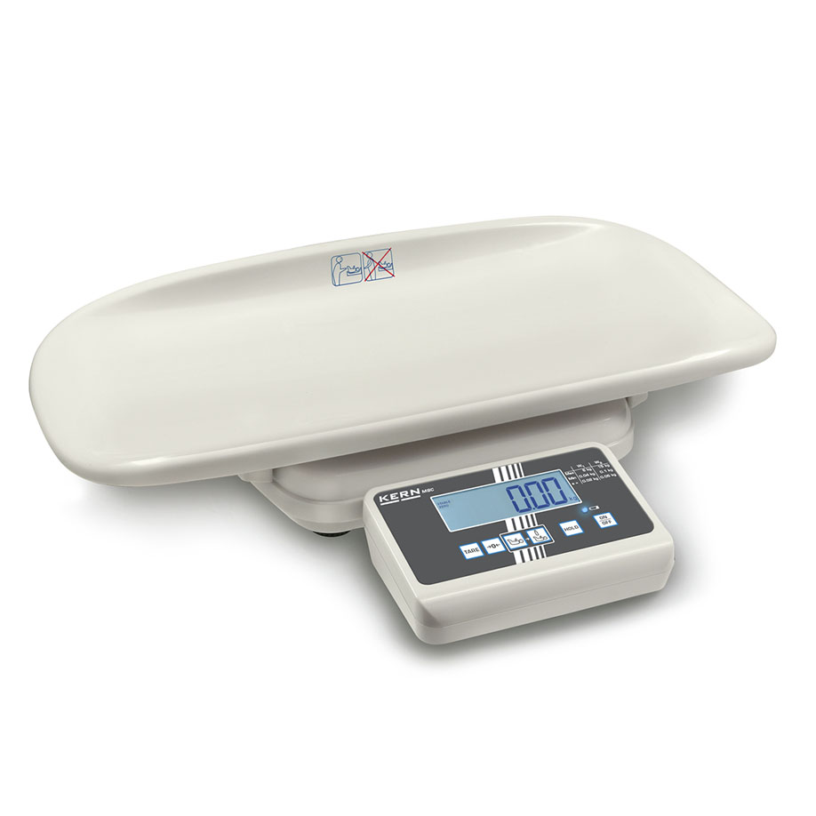 - Hold-Funktion: bei unruhig liegenden Patienten wird über Mittelwertbildung ein stabiler Wägewert ermittelt und eingefroren. So bleibt genügend Zeit, sich dem kleinen Patienten zu widmen und anschließend in Ruhe den Wägewert abzulesen