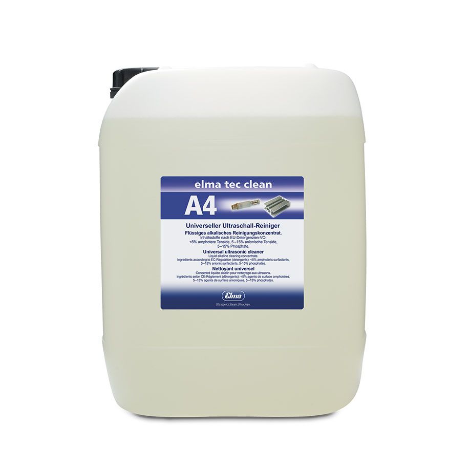 elma tec clean A4 ist ein unvierselles, alkalisches Reinigungskonzentrat für Industrie, Labor und Werkstatt. Geeignet für Metall-, Glas-, Keramik-, Kunststoff- und Gummioberflächen, für Vergaser- und Einspritzdüsenteile, für Überholungsreinigungen (Leiterplatten, Schutzmasken, Tonerbehälter von Kopiergeräten und Druckern) und für Lamellenvorhänge. Entfernt Kühlschmieremulsionen, Läpp- und Poliermittelrückstände, Öle, Fette, Verbrennungsrückstände, Ruß und Staub. Mit den meisten mineralischen Ölen und Fetten demulgierend. AlSiMg-Leichtmetall-Legierungen zuvor auf Beständigkeit prüfen.