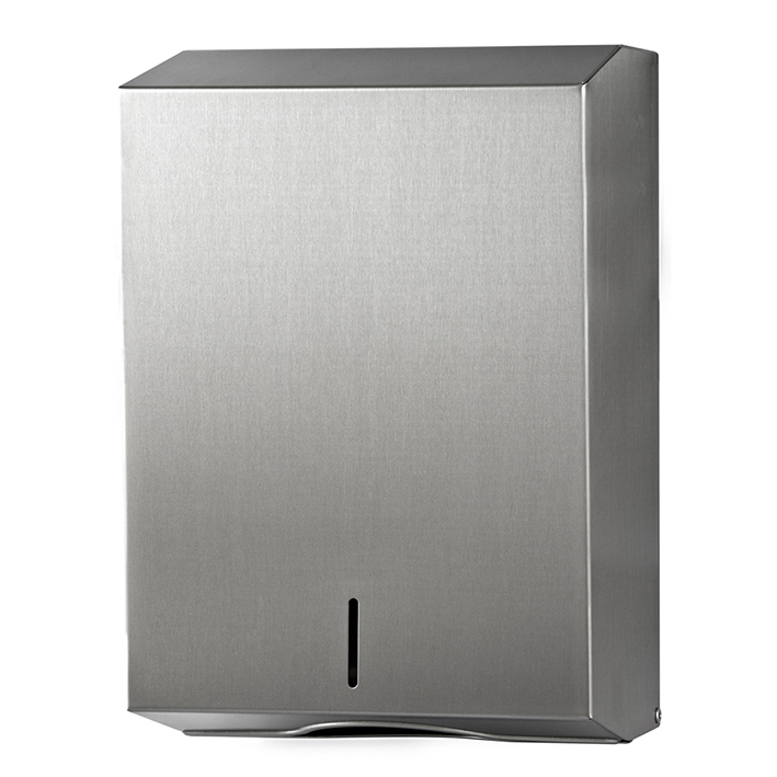 matt gebürstet, mit abgeschrägter Oberfläche, für alle gängigen Faltpapierhandtücher mit Zick-Zack-Falz, Lagenfalz und Interfold, für ca. 400 bis 800 Blatt, abschließbar