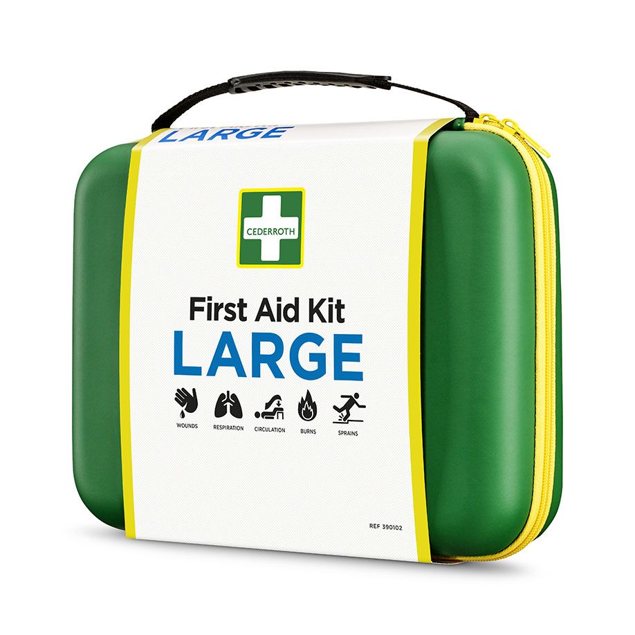 Der Erste-Hilfe-Koffer besteht aus einem gummiähnlichen Material mit einer matten Oberfläche, um Staub, Feuchtigkeit und Schmutz abzuhalten. Der Inhalt bleibt hygienisch sauber und stets einsatzbereit. Die Produkte sind übersichtlich in Fächer eingeteilt. Auf diese Weise ist es leicht, das richtige Produkt zu finden gerade, wenn jede Sekunde zählt. Alle Produkte von Cederroth sind mit klaren, selbsterklärenden Anweisungen versehen. Deutliches Grün und Gelb als Signalfarben sorgen bereits von Weitem für gute Sichtbarkeit des Koffers. Der Griff, der optimalen Grip gewährt, sorgt dafür, dass der Koffer leicht mitzunehmen ist..Abmessungen (B x H x T): 31 x 24,7 x 8 cm.