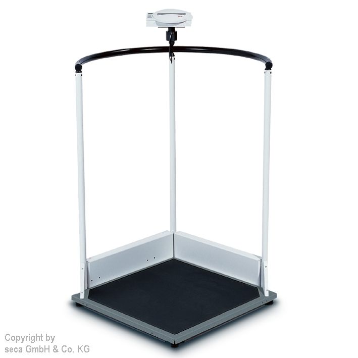 Ausgestattet mit einer extrem flachen, leicht zu betretenden Plattform, einem stabilen Geländer und hoher Tragkraft ermöglicht diese Multifunktionswaage zum einen betreutes Wiegen, zum anderen das Wiegen besonders schwergewichtiger Personen. An dem integrierten Geländer kann sich der Patient während des Wiegevorgangs sicher festhalten. Dank der groß dimensionierten Plattform kann darauf auch problemlos ein Stuhl plaziert werden so dass Patienten sitzen können. Mit der Pre-TARA-Funktion wird ein gespeicherter vom aktuell gemessenen Wert abgezogen und erleichtert damit die einfache Feststellung des Nettogewichtes. Darüber hinaus ist die seca 645 mobil: mit ihren zwei Gummirollen kann sie problemlos auf der Station bewegt und zum Patienten hingerollt werden. Je nach Situation kann zwischen Akku- und Netzbetrieb gewählt werden. Bei angeschlossenem Drucker werden durch das Zeitmodul Zeitpunkt der Wägung und Gewicht automatisch auf dem Ausdruck vermerkt.