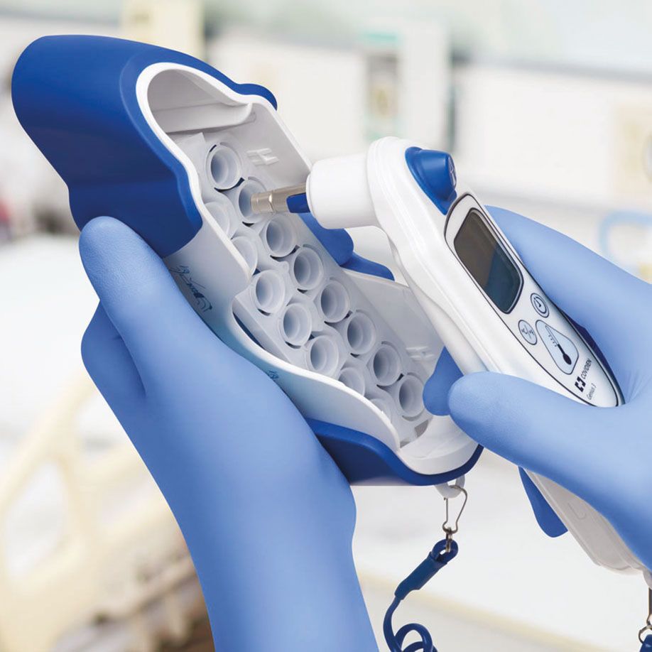 Nach ihrer Platzierung auf dem Genius Thermometer dienen diese Messhülsen als wirksamer Schutz vor einer Übertragung von Infektionen zwischen Patient, Gerät und Arzt. Da die Messhülse auch als Medium für die Wärmeübertragung zwischen Patient und Thermometer dient, ist es wichtig, dass stets Genius AccuSystem Messhülsen verwendet werden. Dadurch wird ein gleichbleibendes Maß an Genauigkeit gewährleistet, da das Thermometer bei der Herstellung auf die exakten Spezifikationen dieser Messhülsen kalibriert wurde. Für jede Temperaturmessung muss stets eine neue Genius AccuSystem Messhülse verwendet werden.