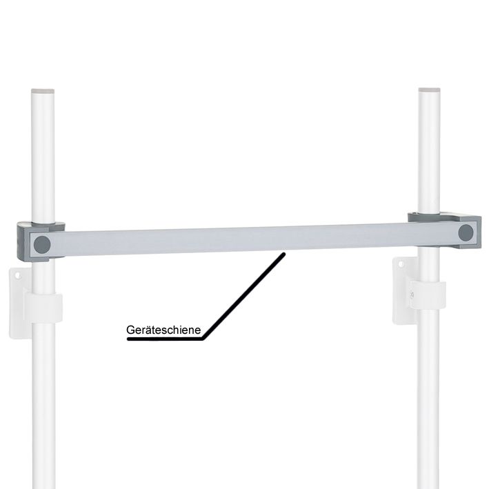 aus Aluminium eloxiert, zur Aufnahme von Zubehör, inkl. 2 Kloben Nr. 205.0600.0, für die Rückwand von Funktionswagen 900 mm breit, für die Seitenwand von Funktionswagen 450, 600 und 900 mm breit. Belastung bis 20 kg. Nutzmaß 750 mm.