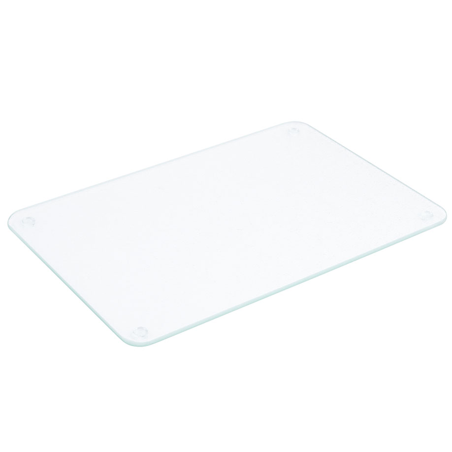 Glas-Schneidbrett aus gehärtetem, schlagfestem Industrieglas mit geriffelter Oberfläche, rutschfeste Füßchen, spülmaschinenfest und sehr hygienisch, geruchsneutral, kein Verfärben der Oberfläche, unempfindlich gegen Hitze- und Kälteschock, nahezu unzerbrechlich