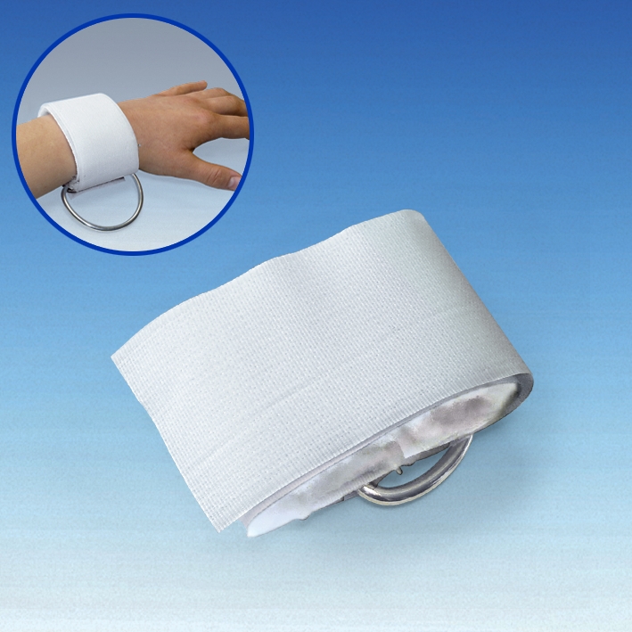 zur Sicherung des Patienten, aus Fellfilz, mit Klettband und Metallring zur Befestigung, waschbar bis 40°C