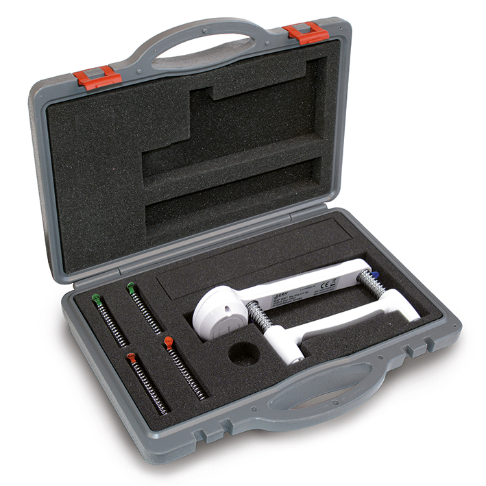 Besonders geeignet für den Einsatz in Rehabilitationszentren zur Bestimmung der Schließkarft der Hand. Durch die unterschiedlichen Härtegrade der einzelnen Federn ist der Handkraftmesser universell bei den verschiedensten Patientengruppen einsetzbar.