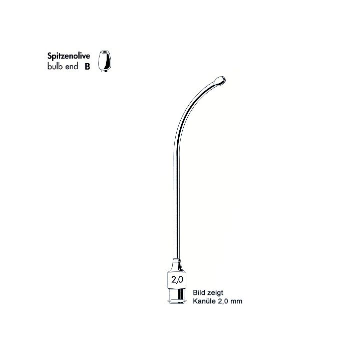 Ø 1,5 mm, 80 mm lang, gebogen, mit Spitzenolive B, unsteril