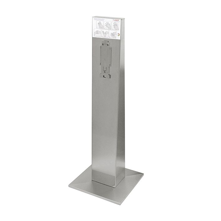 ingo-man Desinfektionssäule, standardmäßig vorbereitet für die Montage eines manuellen oder berührungslosen 1000 ml ingo-man® plus Spenders, auf Wunsch auch Montage von 500 ml Spender möglich (bitte bei Bestellung angeben). Spender und Zubehör sind nicht im Lieferumfang enthalten.
