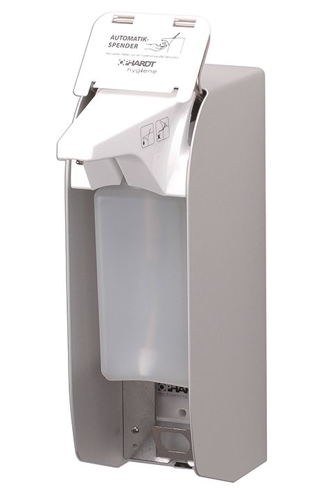 Berührungsloser Spender für Desinfektionsmittel, Lotionen und Flüssigseifen mit Sensortechnologie, für Standard-Euroflaschen, eloxiertes Aluminium, mattsilber, austauschbare und autoklavierbare Edelstahlpumpe mit gekröpftem Saugrohr, einstellbare Dosierung (ca. 0,75/ 1,0/ 1,2 /1,5 ml / Hub), inkl. 1 Clip Automatikspender", mit Notbedienhebel aus Edelstahl für Funktionsgarantie z.B. bei Batterieleerstand, Wandhalter inkl. Montagesatz, HDPE-Leerflasche und 5 Alkaline D-Batterien, Abmessungen (B x H x T): 94 x 339 x209 mm"