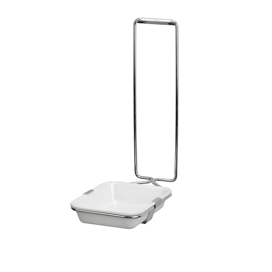 Schalenhalter mit Edelstahlbügel zum Hängen über das Spendergehäuse, verhindert das Abtropfen von Desinfektionsmittel von der Hand auf den Fußboden, herausnehmbare spülmaschinengeeignete Kunststoffschale, Abmessungen (B x H x T): 150 x 410 x 310 mm, für ingo-man® plus Touchless, ingo-man® smart Touchless und ingo-man® smart e-pro Spender.
