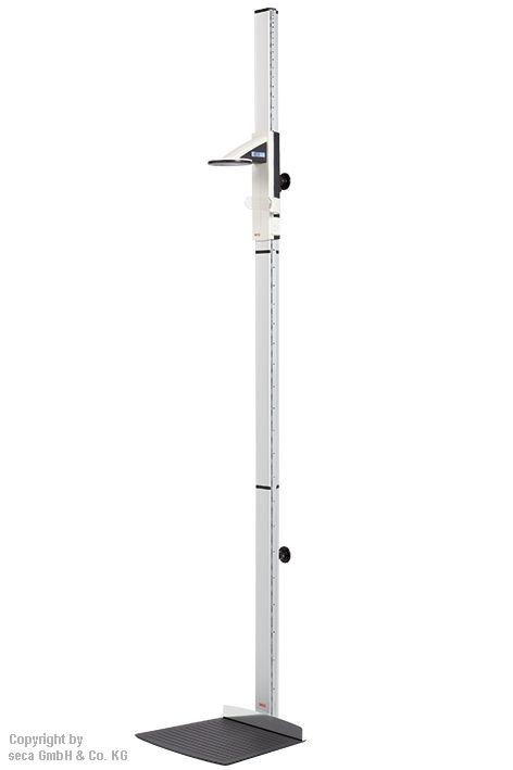 Die Montage an der Wand verleiht dem Stadiometer seca 264 eine enorme, unverrückbare Stabilität. Zusammen mit dem Fersenanschlag und der Positionierhilfe kann der Patient exakt positioniert und die Körpergröße schnell, komfortabel und hochpräzise bestimmt werden. Das Messergebnis wird am Display des Kopfschiebers abgelesen. Kopfschieber mit hinterleuchteter Digitalanzeige für komfortables Ablesen. Rutschfeste Fußmatte mit Fersenanschlag für eine optimale Dreipunktmessung.