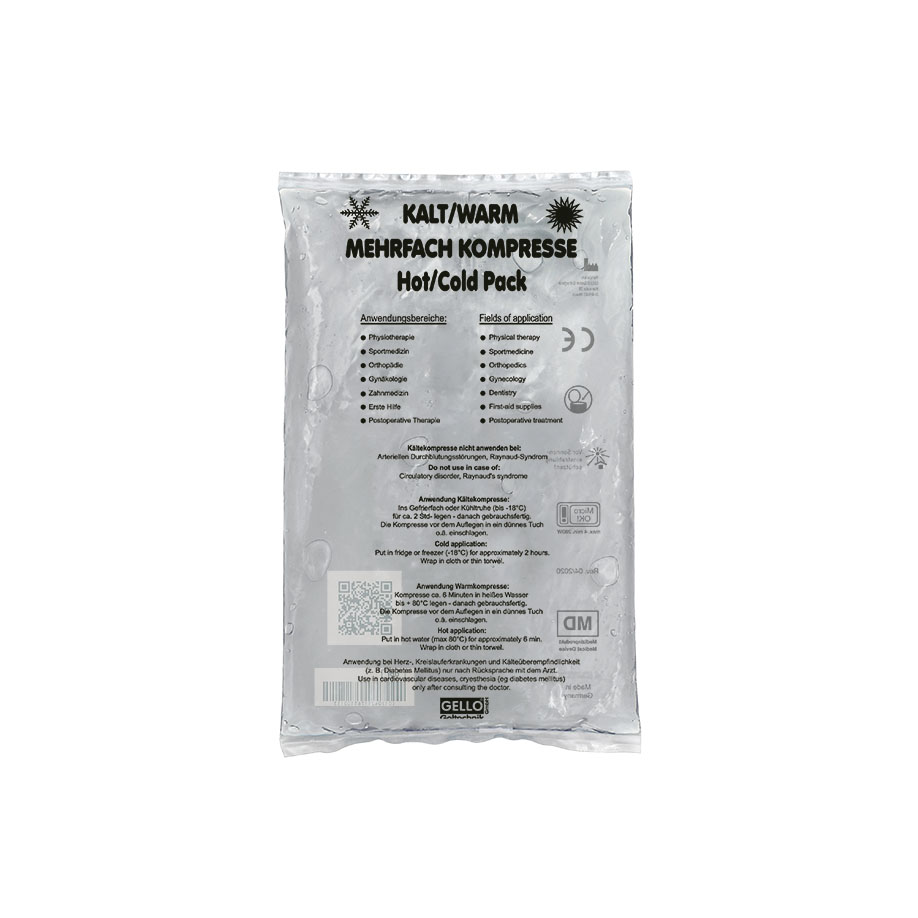Mehrfach Kalt-/Warm Kompressen zeichnen sich aus durch eine gleichmäßige Kälte-/Wärme-Verteilung, äußerste Flexibilität in allen Temperaturbereichen bis -18°C, optimalen Hautkontakt, Wiederverwendbarkeit, hohe Reißfestigkeit durch die Verwendung einer Spezialverbundfolie, die physiologische Unbedenklichkeit des Füllmaterials, die einfache Entsorgungsmöglichkeit über den Hausmüll. Zum Einsatz in: Sportmedizin, Zahnmedizin, Physiotherapie, Erste Hilfe, Orthopädie, Gynäkologie, postoperative Therapie.