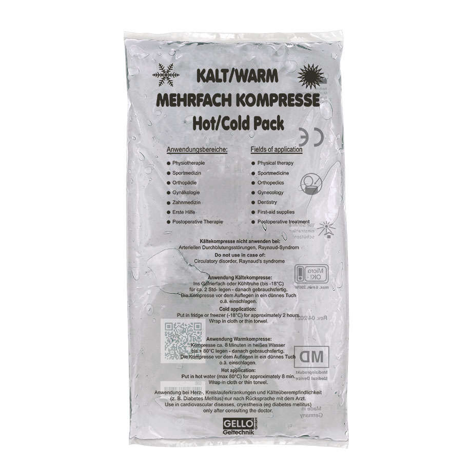 Mehrfach Kalt-/Warm Kompressen zeichnen sich aus durch eine gleichmäßige Kälte-/Wärme-Verteilung, äußerste Flexibilität in allen Temperaturbereichen bis -18°C, optimalen Hautkontakt, Wiederverwendbarkeit, hohe Reißfestigkeit durch die Verwendung einer Spezialverbundfolie, die physiologische Unbedenklichkeit des Füllmaterials, die einfache Entsorgungsmöglichkeit über den Hausmüll. Zum Einsatz in: Sportmedizin, Zahnmedizin, Physiotherapie, Erste Hilfe, Orthopädie, Gynäkologie, postoperative Therapie.