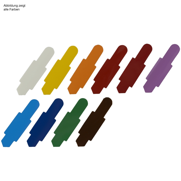 Für Karteimappen A4 (Artikel-Nr. 60.201 und 60.204), sowie Karteihülle A4 (Artikel-Nr. 60.044) geeignet, statt Signalkarten, zur temporären Markierung, Kunststoff, 55 x 15 mm.
