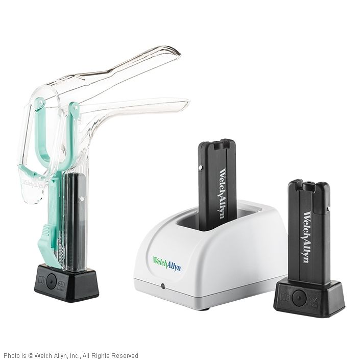 - wird der Lichtgriff in das Spekulum gesteckt, schaltet sich das Licht automatisch ein / wird er herausgenommen, erlischt das Licht