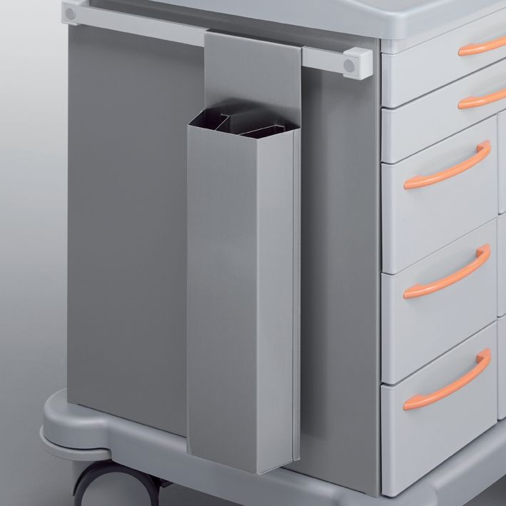 164 x 75 x 450/560 mm (B x T x H), aus Chromnickelstahl 18/10, zur Aufnahme von Kathetern. (zum Anhängen an Galerie oder Seitenschiene), Nutzmaß 165 mm.