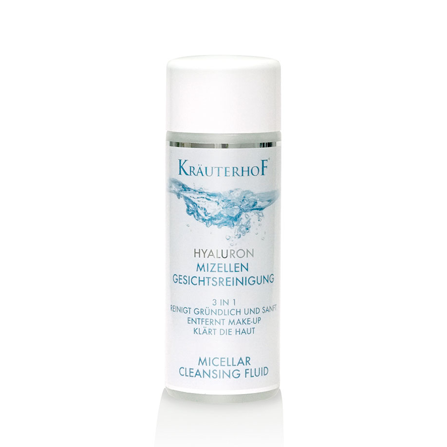 KRÄUTERHOF® Hyaluron Reinigungsfluid kombiniert die Wirkung eines Make-up-Entferners mit der Wirkung eines Gesichtswassers. Durch die Mizellen-Technologie werden Schmutzpartikel und Make-up wirksam eingeschlossen und sanft von der Haut entfernt. Mit Panthenol, alkohol- und parfümfrei: besonders für trockene und sensible Haut geeignet.
