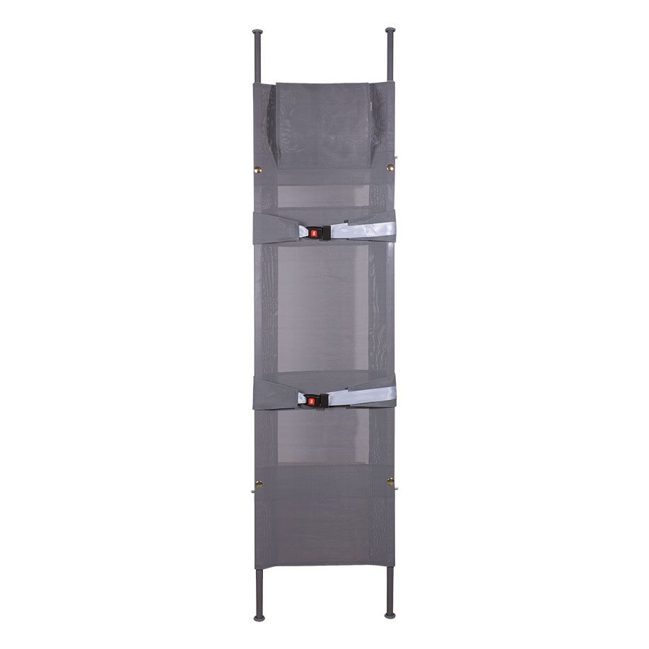 Ca. 2302 x 556 x 137 mm (Faltmaß ca. 1920 x 150 x 145 mm). Nahtlose Aluminium-Vierkantprofile, hochbelastbar, verriegelbare Stahlgelenke, Tragegriffe einschiebbar. Patienten-Sicherungsgurte mit Schnellverschlüssen. Tragenbezug monofiles Polyethylengewebe, atmungsaktiv, desinfizierbar, verrottungsbeständig, mit Kopfkissentasche.