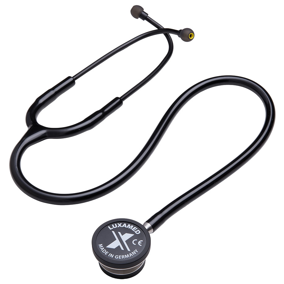 - Doppelkopf-Bruststück aus Edelstahl zum Abhören von höherfrequenten (mit Membrane) und tieferfrequenten (mit Trichter) Geräuschen, die Trichterfunktion wird ermöglicht, indem die kleine Membrane abgenommen wird