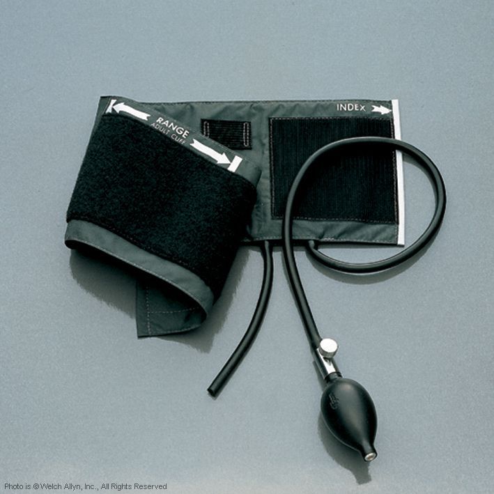 - Manschette, Neoprenblase mit zwei Schläuchen, Pumpball, Ventil und Dreifach-Anschluss