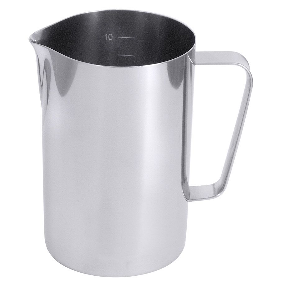aus Edelstahl 18/10, hochglänzend, mit Ausgussschnaupe, innen graduiert, extra schwere Qualität, Messskala: in 0,1 l Schritten, Maßzahlen jede 0,2 l, Höhe 15 cm