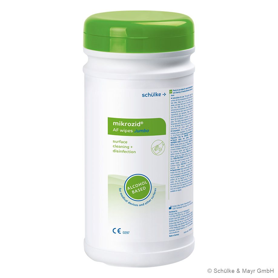 mikrozid® AF wipes sind gebrauchsfertige, rückstandsfreie, alkoholische Schnelldesinfektionstücher (Tuchgröße 20 x 27 cm). Zur Desinfektion von nicht-invasiven Medizinprodukten. Sehr breit wirksam innerhalb kürzester Zeit (Wirkspektrum: bakterizid, tuberkulozid, levurozid, begrenzt viruzid, begrenzt viruzid Plus, Polyoma SV 40, Rotavirus).