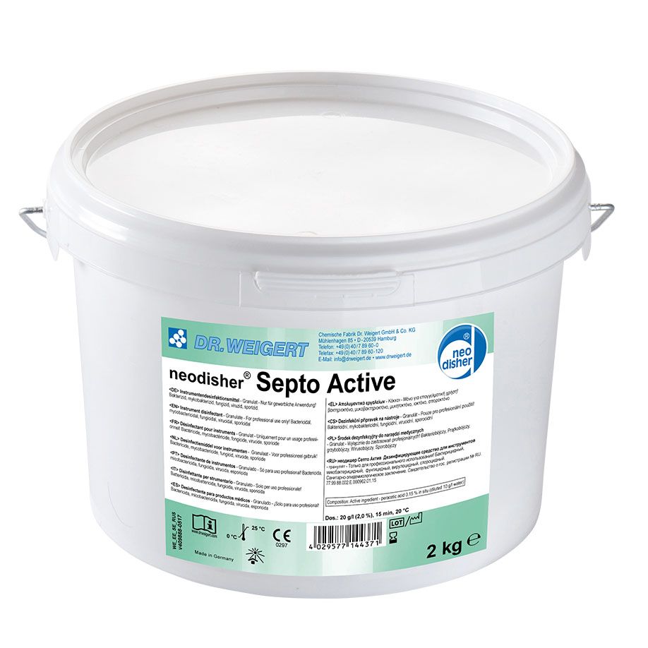 Zur manuellen Desinfektion von thermostabilen und thermolabilen Instrumenten und für die manuelle desinfizierende Reinigung im Tauch- oder Ultraschallbad. Frei von Aldehyden und quaternären Ammoniumverbindungen (QAV). VAH-gelistet, in der Viruzidie-Liste des IHO eingetragen, ÖGHMP-gelistet. Bakterizide, fungizide, mykobakterizide, viruzide und sporizide Wirksamkeit gutachterlich bestätigt.